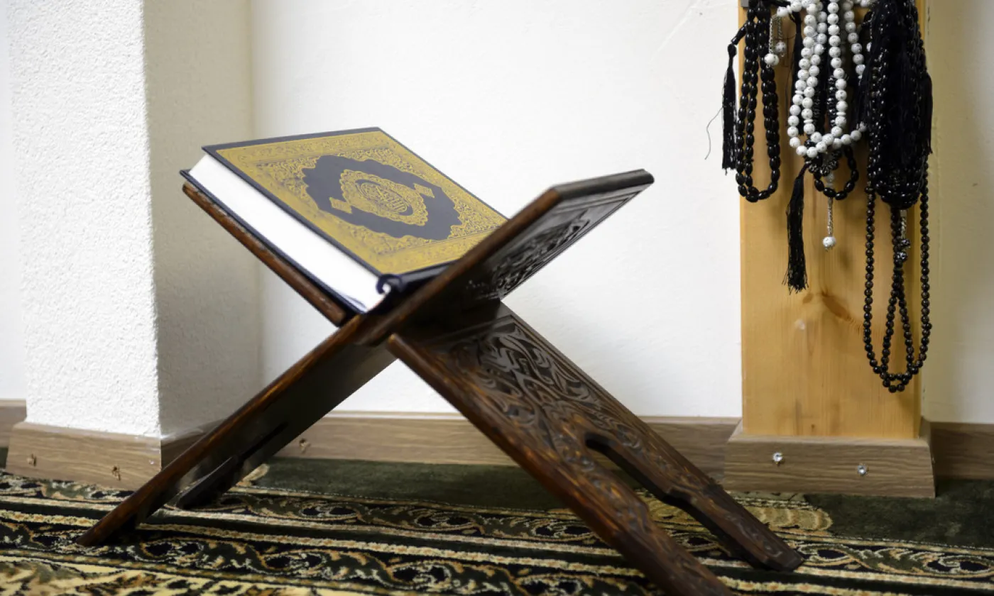 Chapelets et Coran. Salle de prière de la mosquée de Payerne © Keystone / Laurent Gilliéron